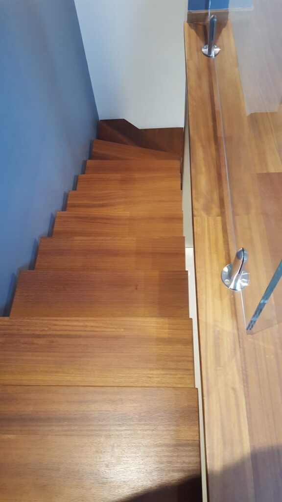 réalisation d'un escalier en Iroko à cassis