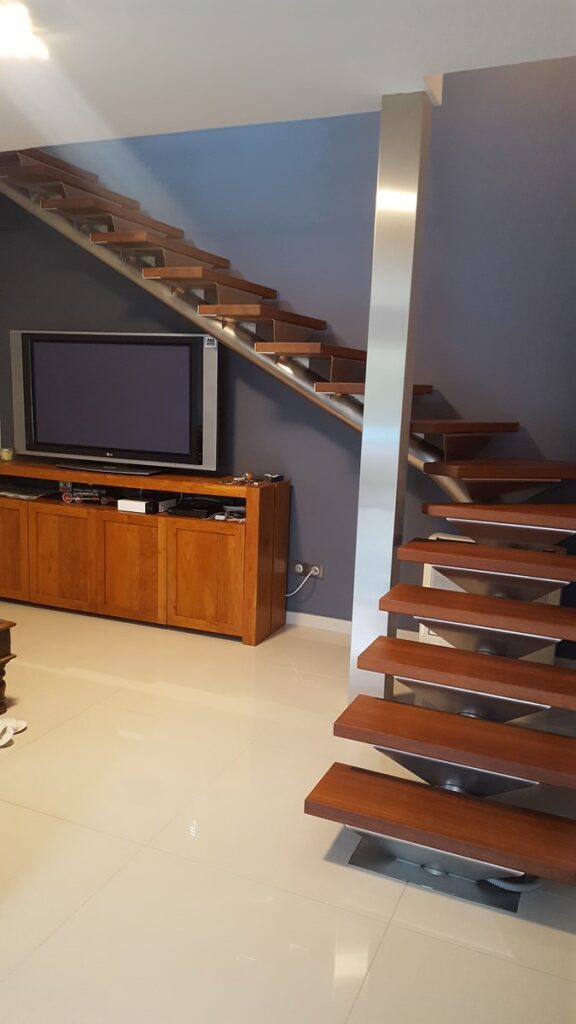 Cet escalier en teck à Éguilles est un exemple idéal de notre expertise en matière de conception et de pose d’escaliers sur mesure· En utilisant un bois noble comme le teck, nous avons créé une structure élégante et durable, qui est idéale.